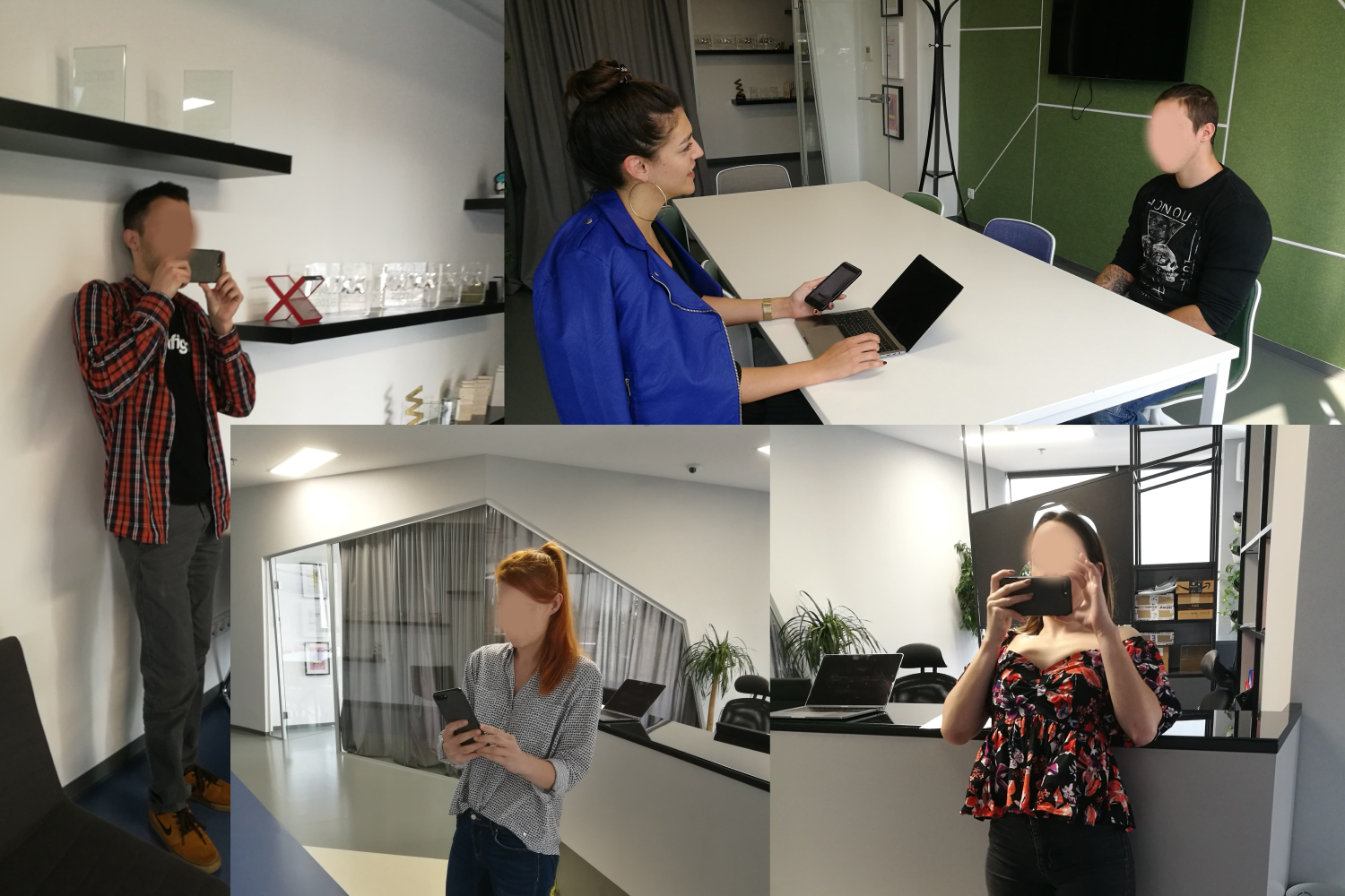 Participants testing the AR room scanning feature in various room setups