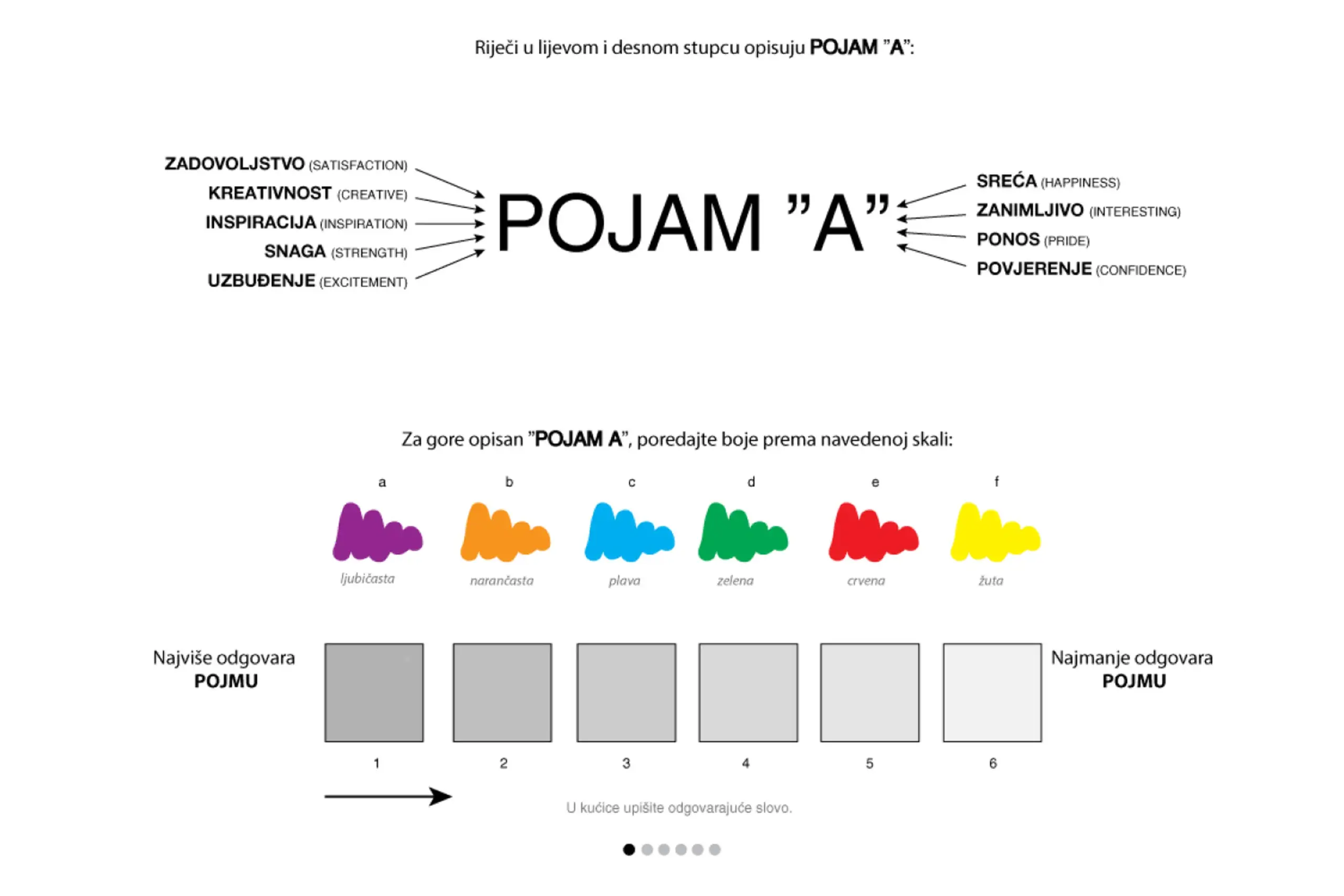 Group A (Positive): Satisfaction, Creative, Inspiration, Strength, Excitement, Happiness, Interesting, Pride, Confidence