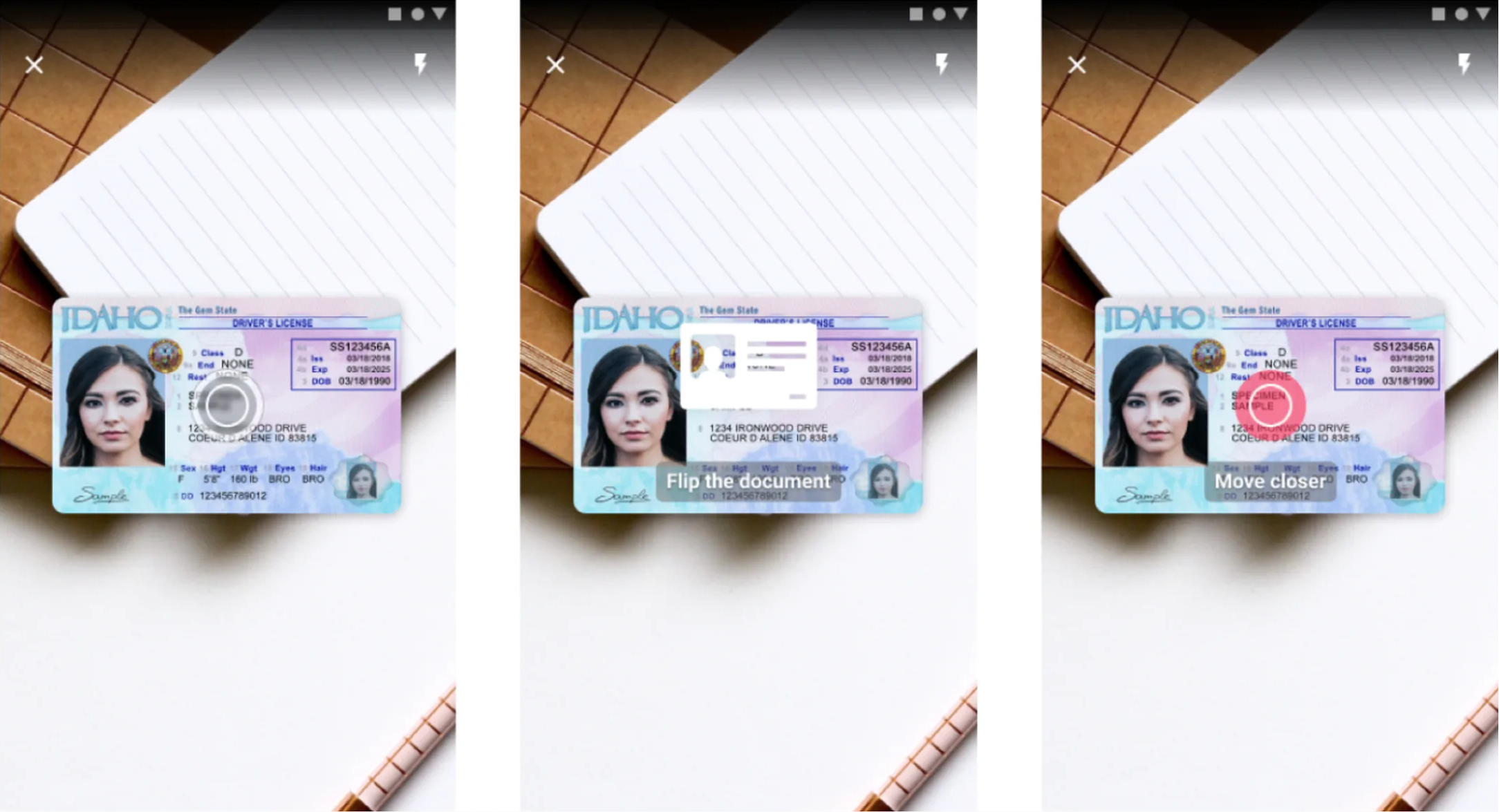 Unclear instructions: Text appeared saying “Scan the front side of a document.” But users didn’t know if that meant the whole card or just the barcode. US driver’s licenses have two barcodes, one on top, one on bottom. The instructions just said “barcode” with no indication of which one.