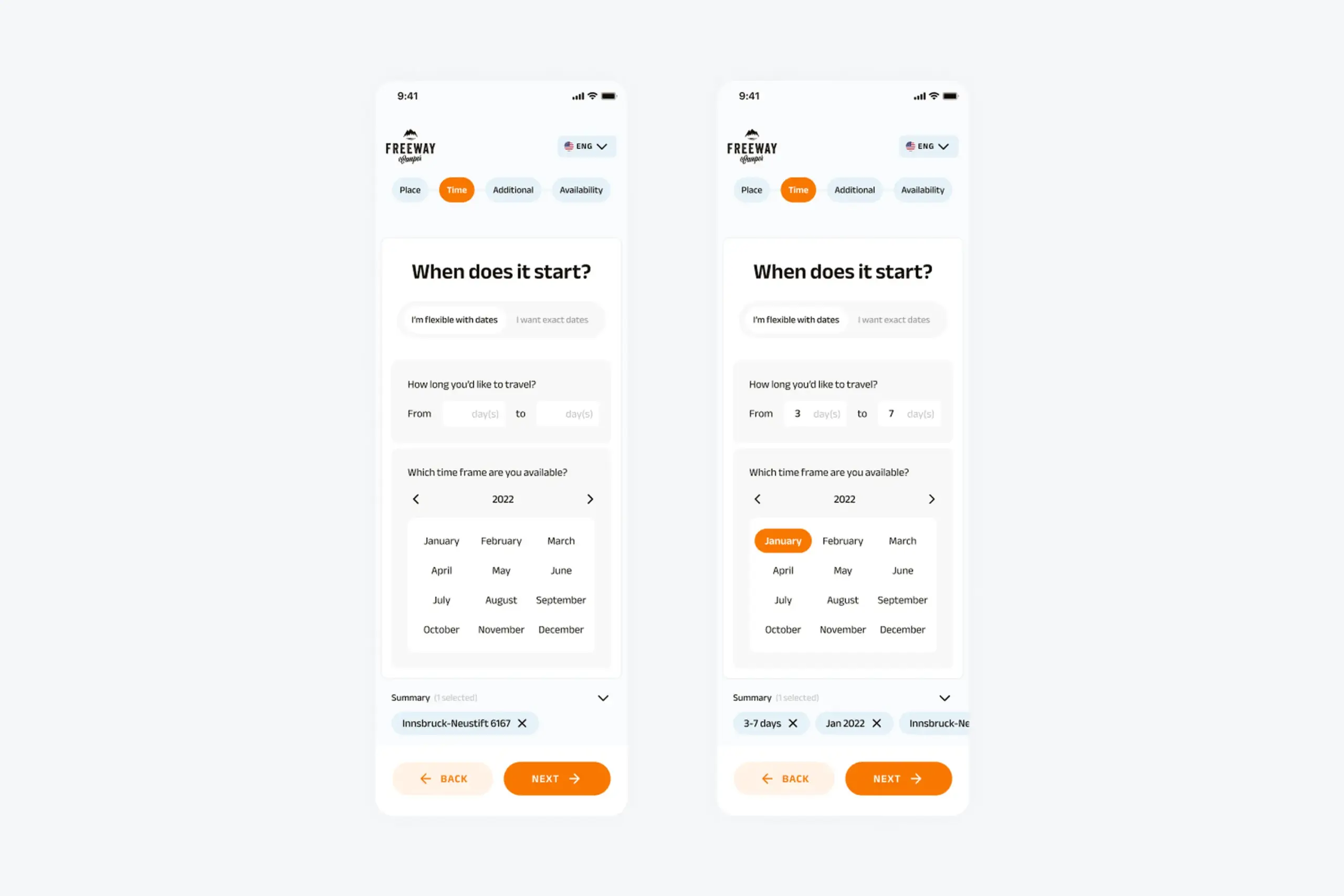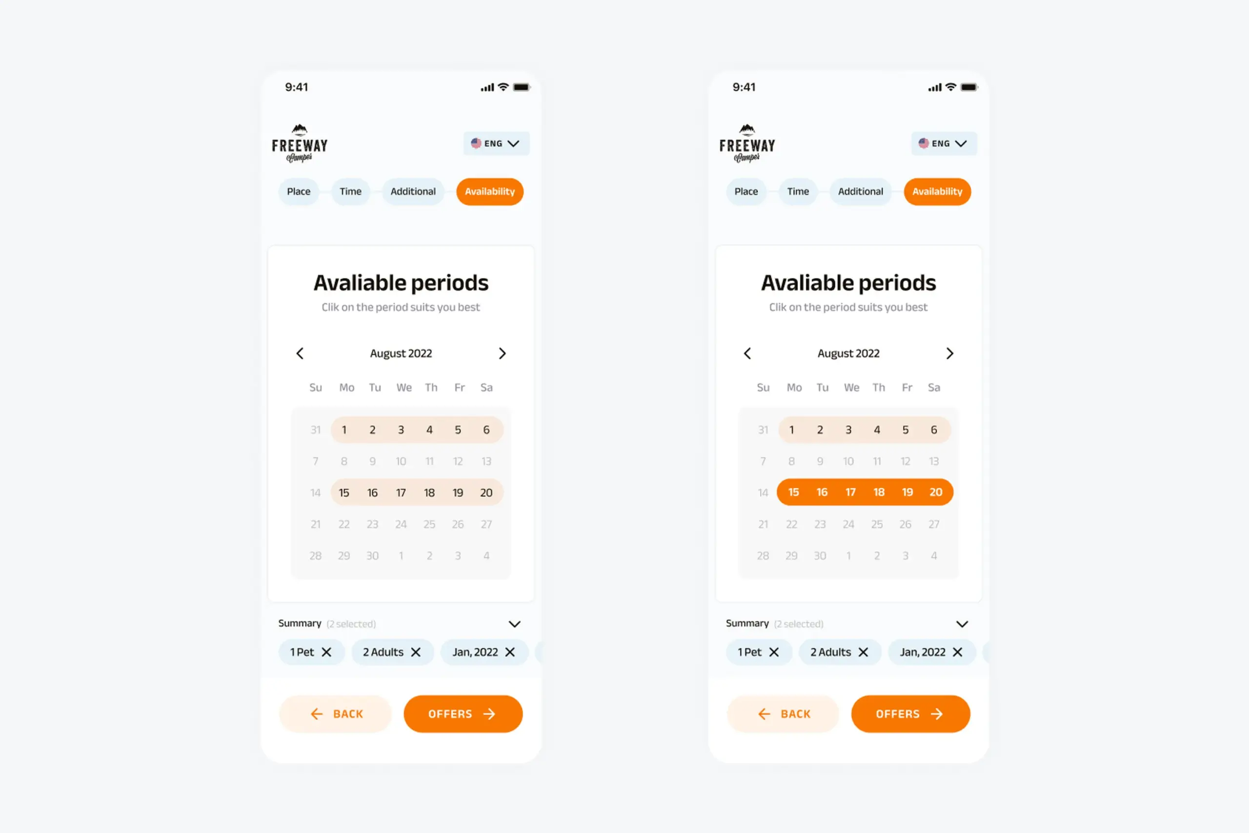 Both flows follow the same structure after date selection: