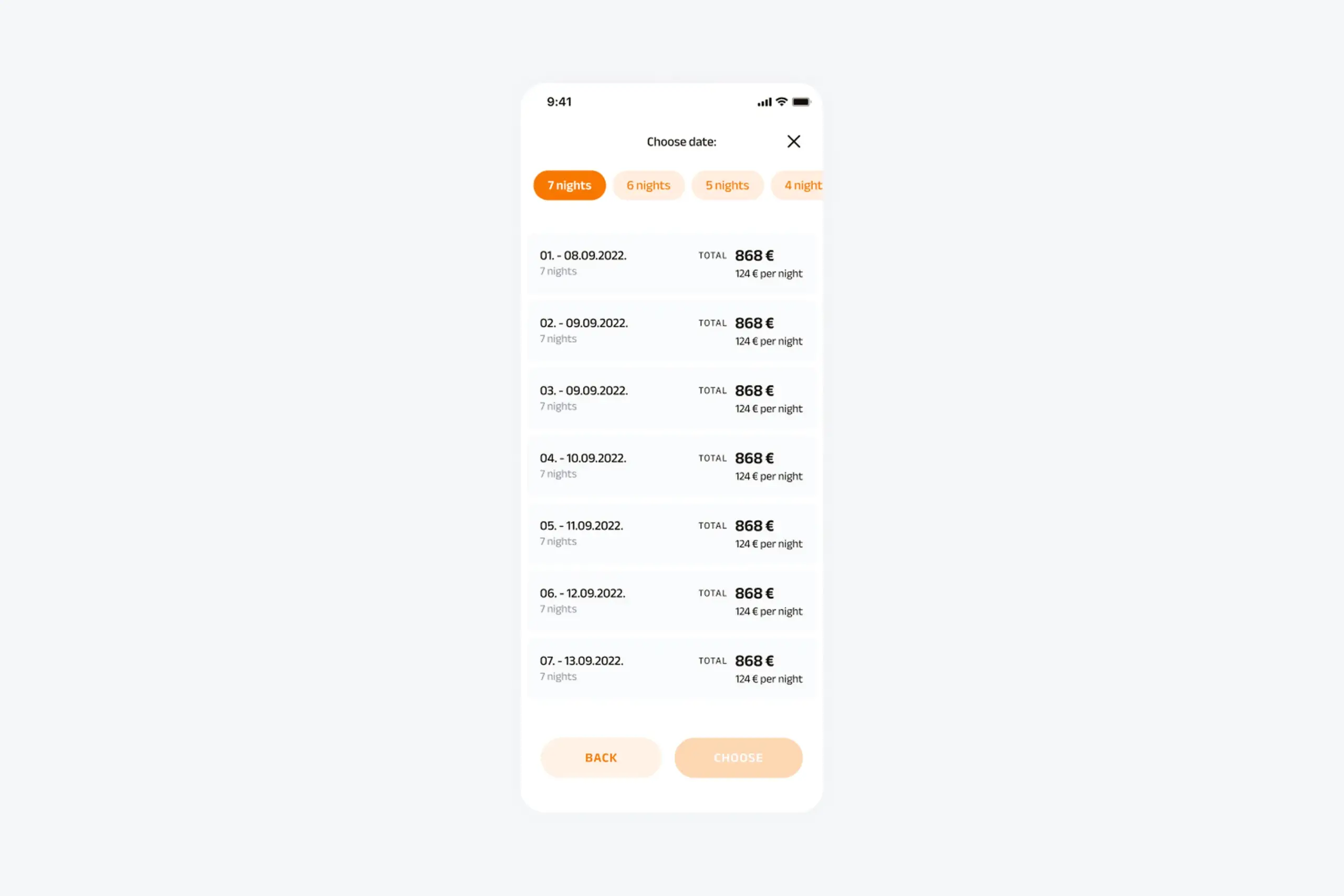 - Two booking flows: flexible dates vs exact dates