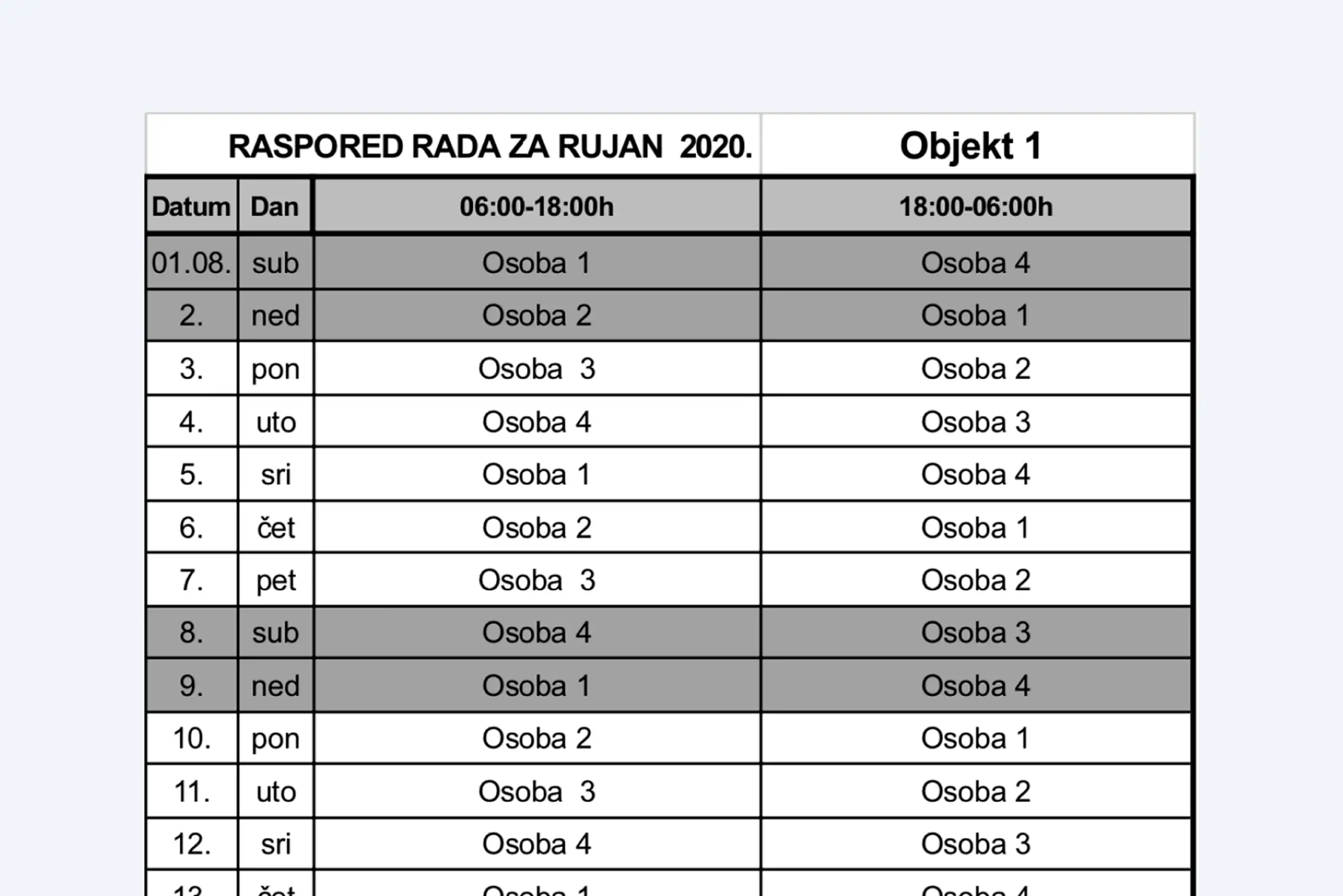 Excel spreadsheets were used to manage guard schedules with different security levels and hourly rates