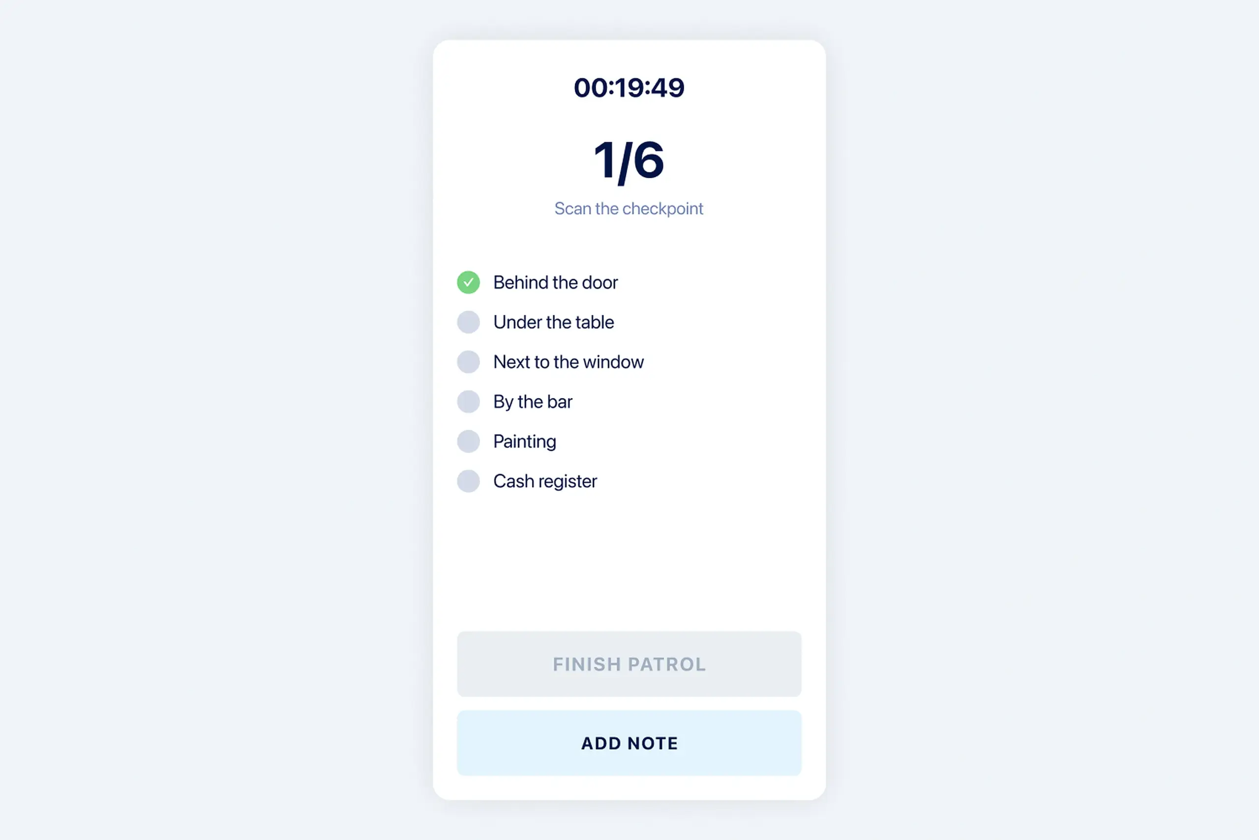 Guards are on their feet, moving through facilities, often in poor lighting, sometimes in stressful situations. The app needed to be dead simple.